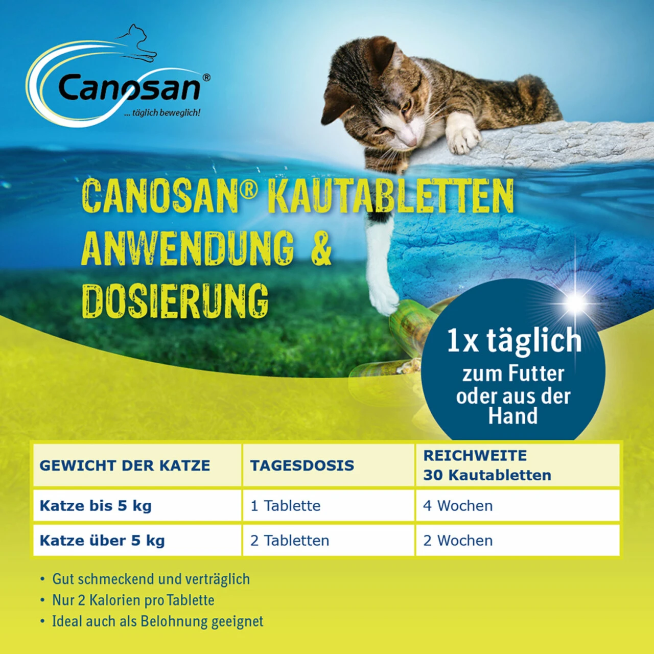 Fütterungsempfehlung von Canosan Kautabletten für Katzen: